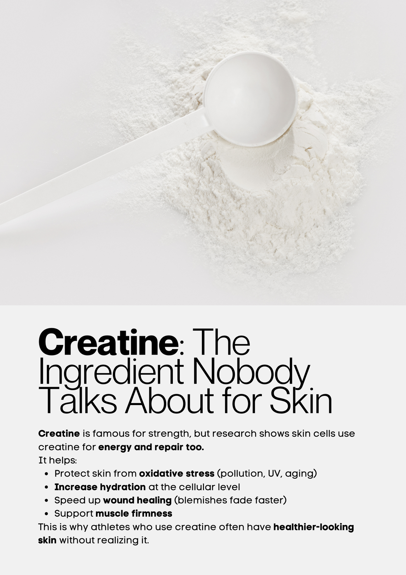 Boosts strength, power,endurance and cognitive function during high-intensity activities. Creatine is scientifically proven to enhance athletic performance by increasing energy availability in your muscles.