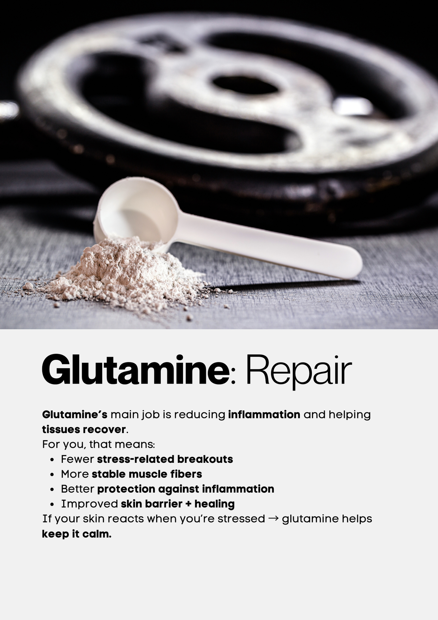 An essential amino acid for muscle recovery and immune health as well as gut health, glutamine helps your body bounce back faster after intense training, reducing soreness and fatigue.